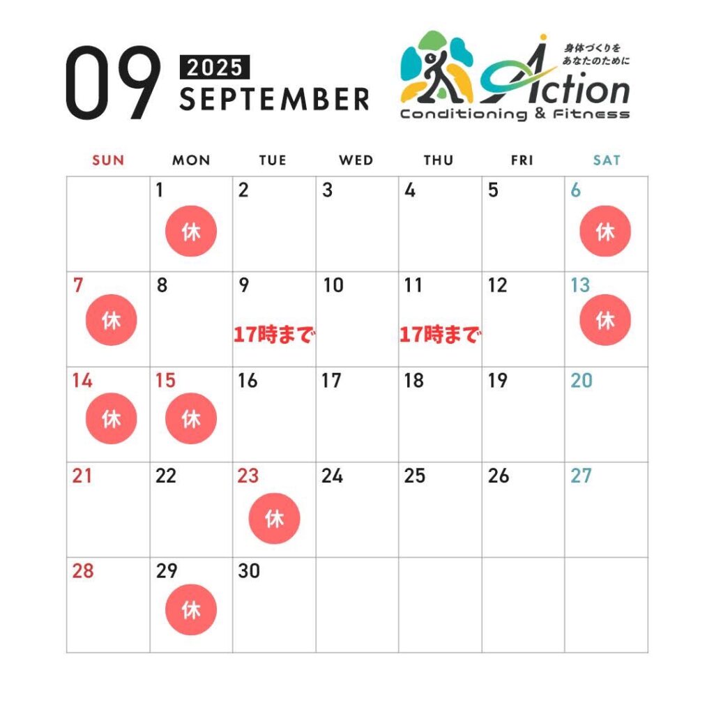 2025年09月01日 09月の営業カレンダーを掲載しました。